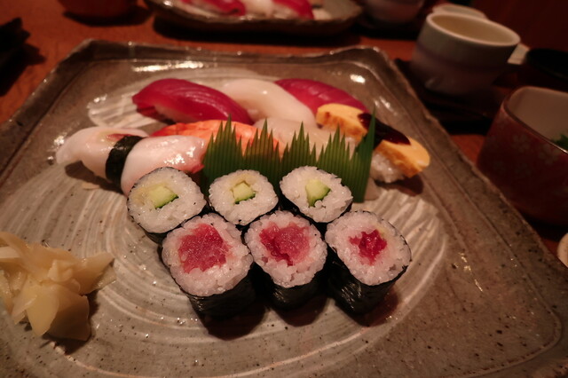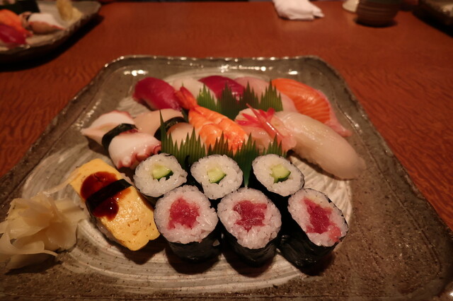 内容はお寿司の握り、小鉢、茶碗蒸し、赤だし