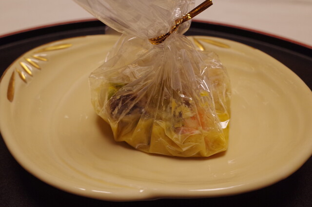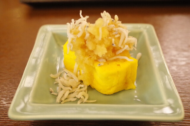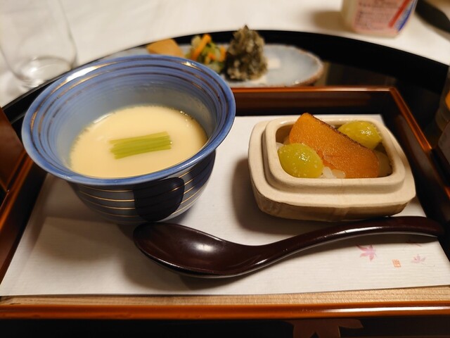 凌ぎ:海鼠腸の茶碗蒸し 炙りカラスミ銀杏の飯蒸し