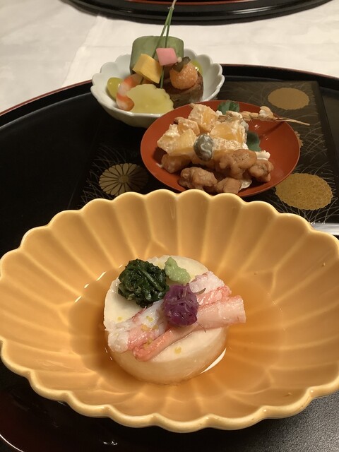 先附は山芋の中に鮑や卵豆腐が入ってます。
