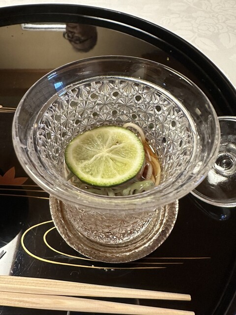 添え そばに輪切りの酢橘が載ってて、蓴菜も入ってました。