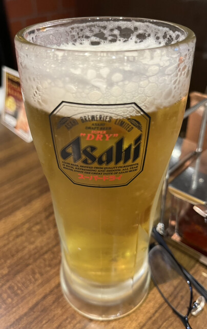 すぐに飲み物とキムチが到着。生ビール、ウマイ。キムチもウマイ。