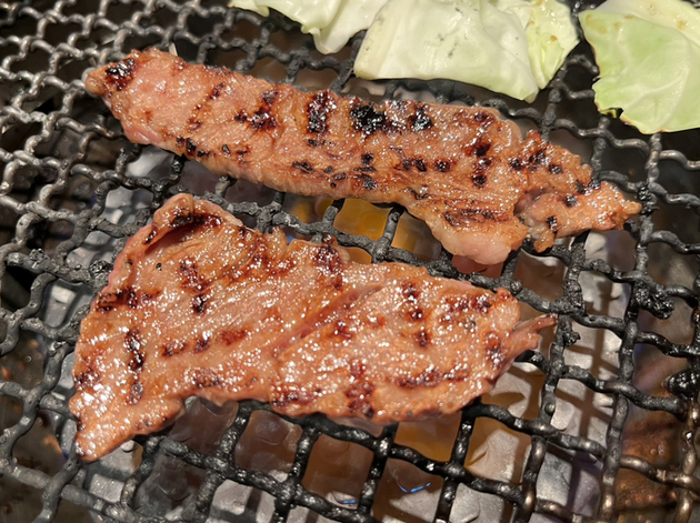続いて、牛タン塩が到着。良いお肉なので、少しずつ丁寧に焼いていきます。あまり焼きすぎないように、、、、。→超うまい。ここ数年で頂いたタン塩でNo.1です。以上です。