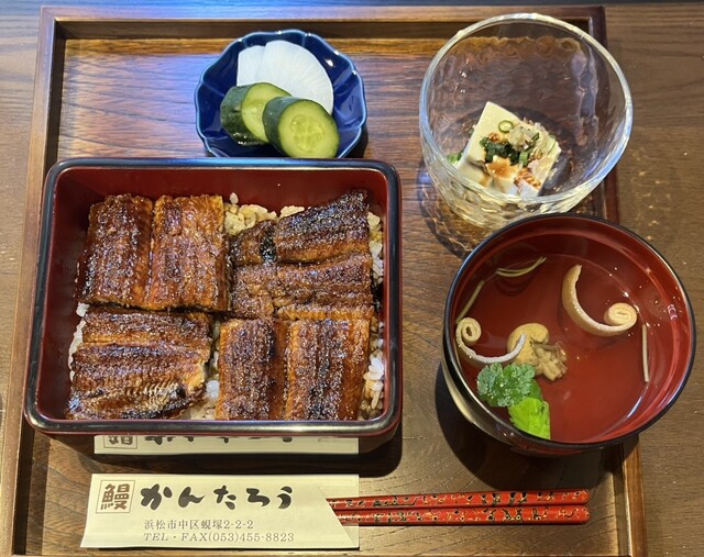 浜松のうなぎの有名店、かんたろうさんにお伺いしました。土曜日の13時に予約をしていましたが、30分くらい早く到着してしまいました。テーブル席が空いているとのことで、すぐに案内して頂きました。お手数をおかけしました。