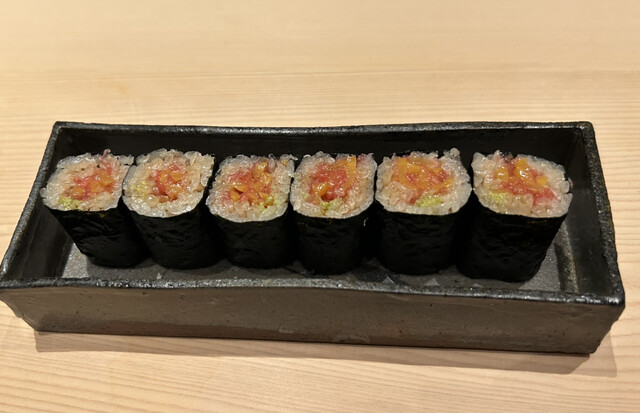 松茸と秋刀魚の組み合わせ、想像を絶します組み合わせに驚き、シャリの温度も凄く良い仕事をされており、感動物でした。