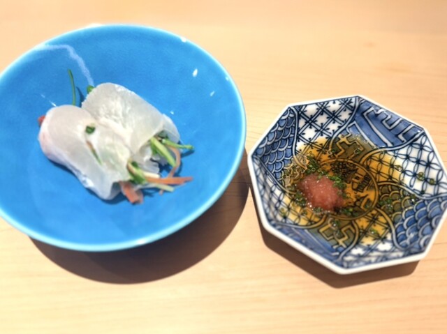鮃のカラスミ添えと鯖のお造り