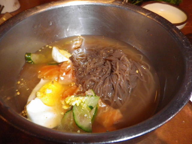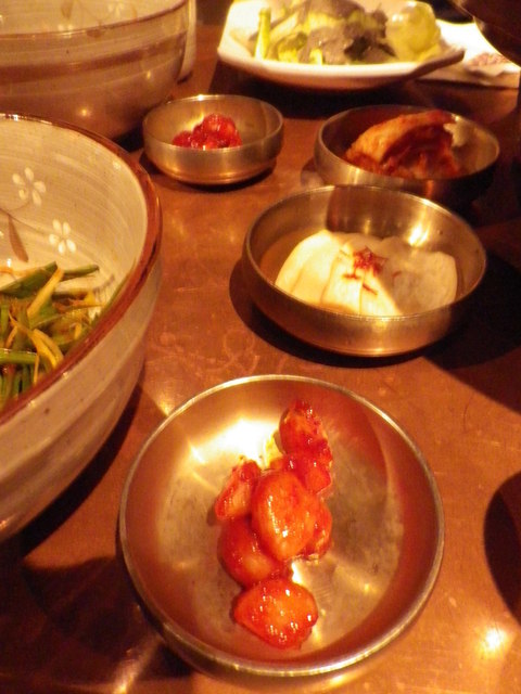 オモニ(お母さん)が焼いてくれる、韓国スタイル! フランス人の同僚は、え~って感じ(男女、フェアじゃない!)