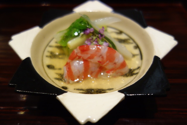 *芯をくり抜いて、中にホタテのムース 海老が乗っていてソースは海老ベース 軽く焼かれているのか?トウモロコシはカリカリ