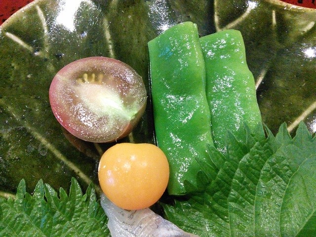 わさび醤油で 紫蘇までも旨い✨ トマトも