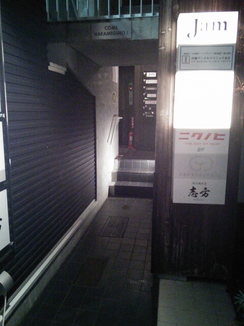 中目黒駅 恵比寿からだと一番前の出口(改札)を左に出て、線路から一筋離れた商店街を右へ 郵便局の先の筋を右折 2~30メートル行った左のビル4階