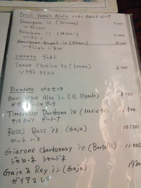 ✴ワインは、ボトルでフリウリの白を 7000円 → フルーティーでまずまず