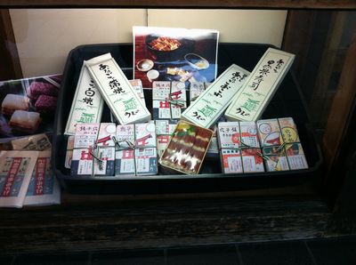 入口のそばのショウケースには歴代の弁当が陳列されています。