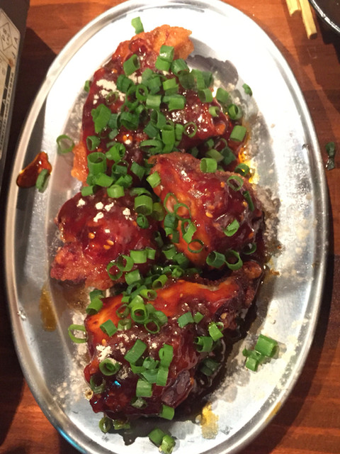 オモニの唐揚げはサックサクの衣に甘辛のタレがかかっています。