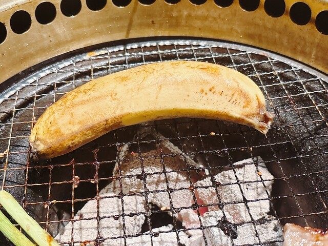 バナナは真っ黒になるまで焼くと店員さんがアイスクリームを持ってきてくれます。