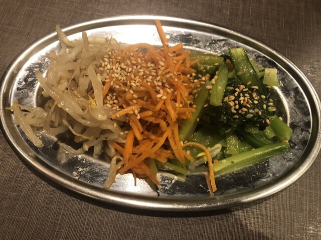スピードメニューとして、枝豆、キムチ3種盛、カクテキで韓国料理の味わいを堪能。キムチ、カクテキとも日本人に合う辛さで丁度良いの。
