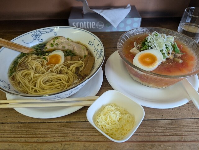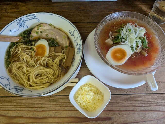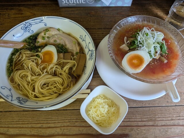 夏季限定、数量限定の夏トマトの冷たいしおらぁめん並盛1380円(別皿チーズ付)