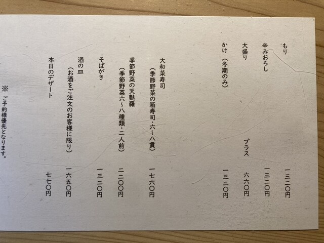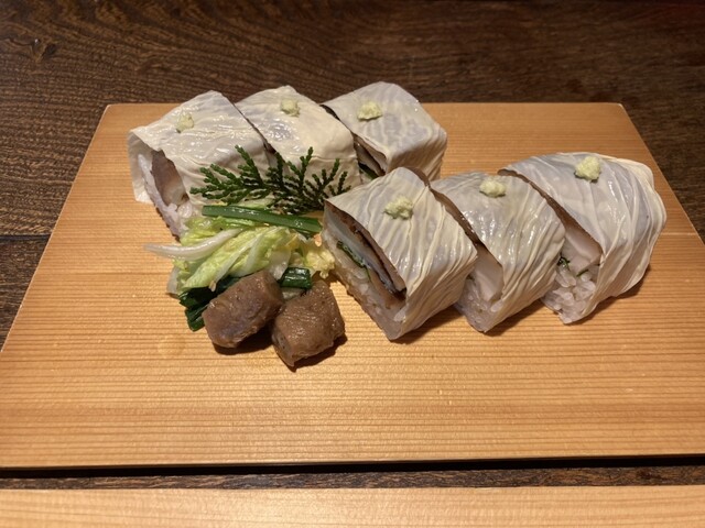 混雑店のようで、当日朝に予約TEL。朝から天気が悪かったこともあり予約OKでした。店内は、雰囲気の良い落ち着く古民家。季節野菜のお寿司を注文したのですが、野菜もみずみずしさを保っていて、酢飯とバランスよく収まっているのが素晴らしかったです!お蕎麦も最後まで美味しく食べ切れました!これは人気店なはずです!ご馳走様でした!