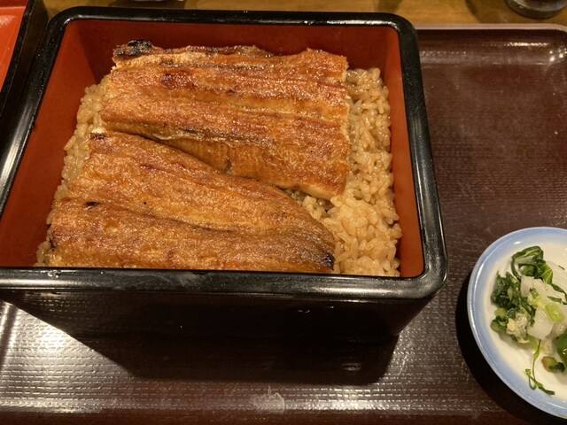 平日、小雨が降る13時頃訪問。店内は、予約済みのお客さんで賑わっています。平日でも入店前に電話予約しておくのが無難なお店です。さて、こちらのうな丼は3,500円を注文。ごはんは、事前に混ぜ混ぜしてくれていて、色が均一です。肝心のうなぎですが、関西風の焼きが好きな私にとってはベストオブベストでした!もっと早く伺いたかったほど美味しかったです♪ご馳走様でした!