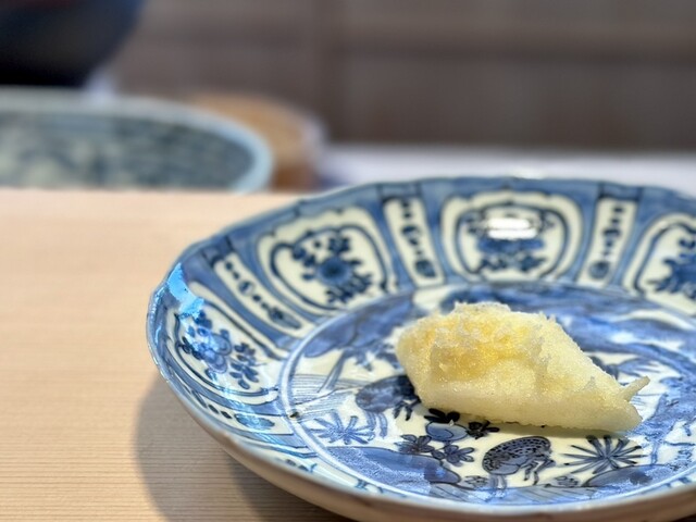 事前の仕込み、そして直前の仕事を見事に進め、そこから仕上げの揚げによって、素材が最高の状態でかつ、甘味や旨みをミリ単位ナノ単位くらいの計算し尽くされ、抜く水分量と向き合う凄さを見せて頂きました。