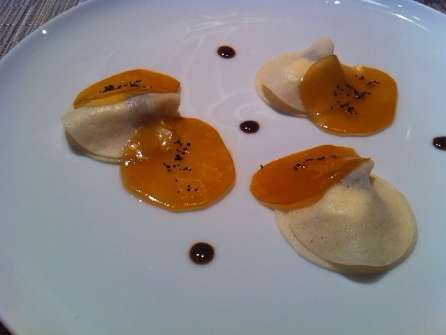 それをも覆す素晴らしい料理、忘れましたが魚のソースの繊細でかつメリハリの効いた酸味・香りのバランスが頭にこびり付いて離れません。この酔っ払いの味蕾を刺激するソースを作るのだから流石ソースのトロワグロですね。ハーブ名を忘れてしまっても美味しい感覚は残ってます。不思議とプィイフュメの今は亡きディディエダグノーを飲んだ時の感覚を思い出しながら、料理とワインも味わいを表現する世界観は同じじゃな〜などと思ったりしました。最もその時にはボルドーの赤を飲んでおりましたが・・・!