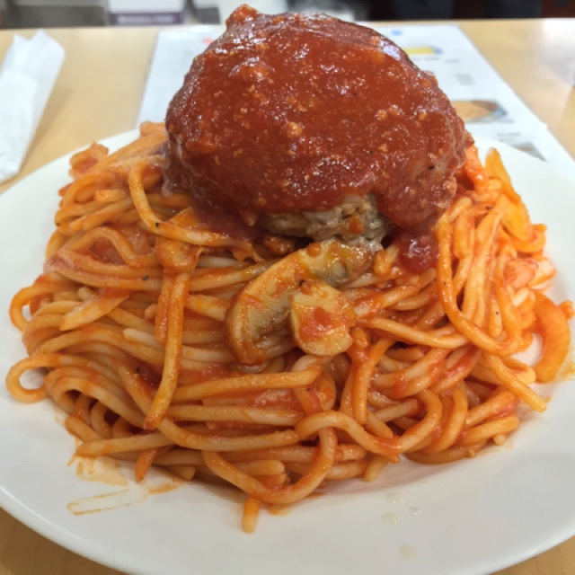 注文はもちろん、ハソバーグスパゲティのセット、大盛り!