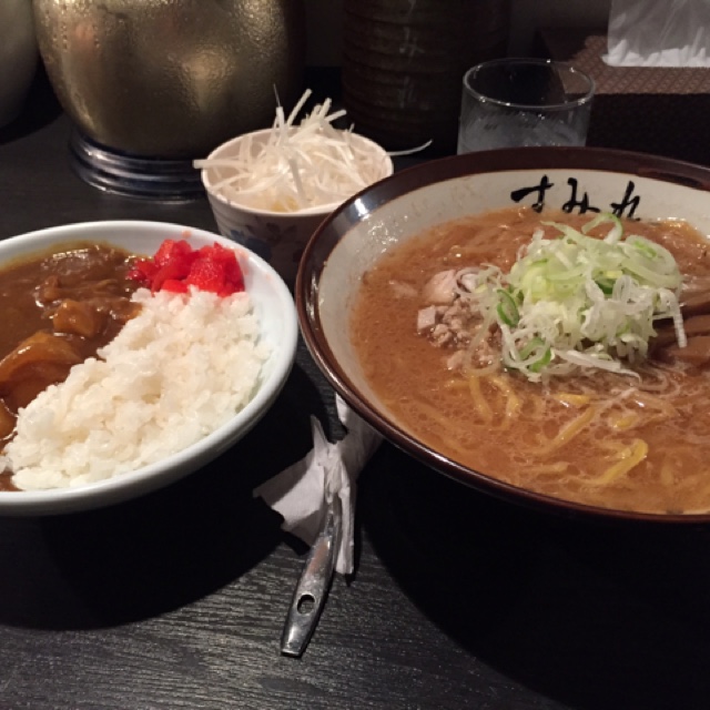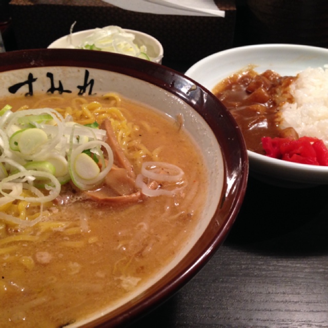 平日限定の味噌ランチ、味噌ラーメンとカレーライス! +追加トッピングのネギ