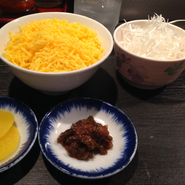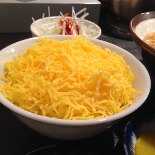 鬼飯は、ししとうの辛子醤油漬と、錦糸卵をのせたごはん。こちらは錦糸卵をのせたごはんです。