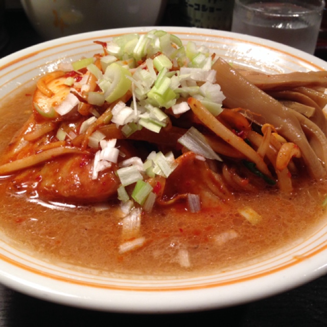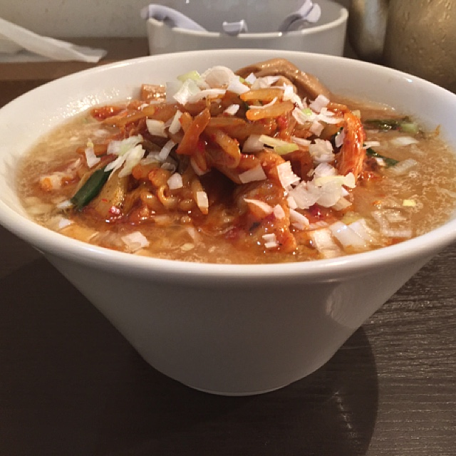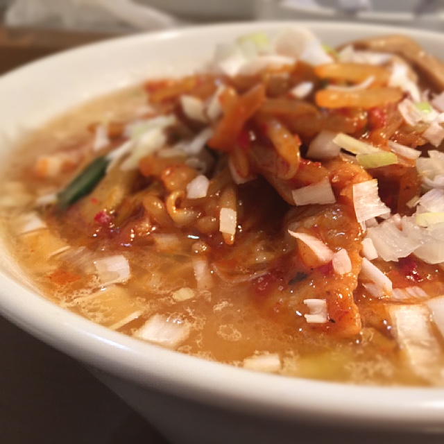 味噌キムチラーメン! 豚肉もキムチもプリタツ。豚肉とキムチって間違いない組み合わせだよね。もちろん、良い。