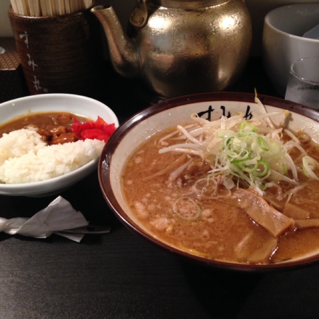 味噌ラーメン! これぞすみれ! やっぱりこれだよなぁ。正油ラーメンも好きだけどね。アッツアツのスープ、冬はやっぱりすみれの味噌ラーメンだよNE☆