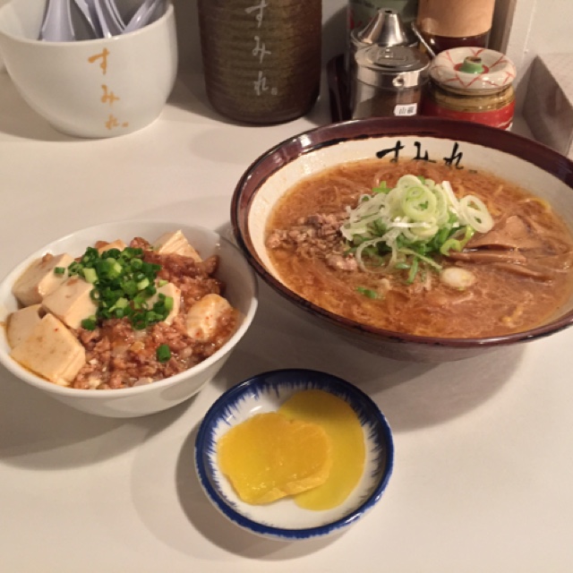 ミニ味噌ラーメン、550円。久しぶりにすみれの味噌ラーメンを食べた。食べすすめても冷めないスープは変わらず。思い出の味、また札幌に行きたくなった。