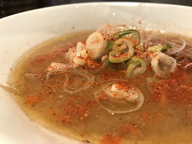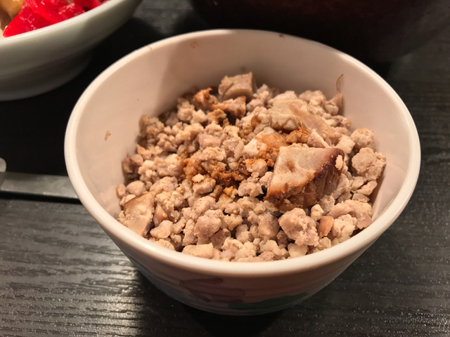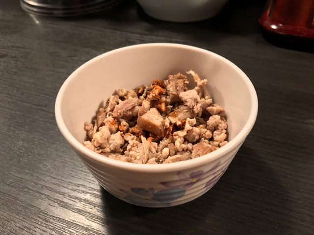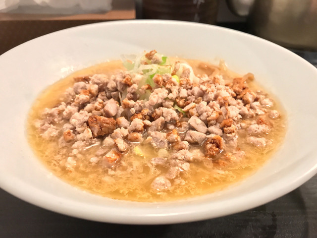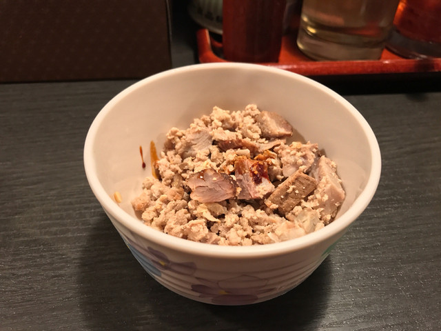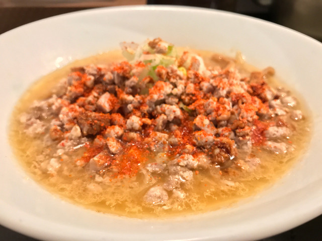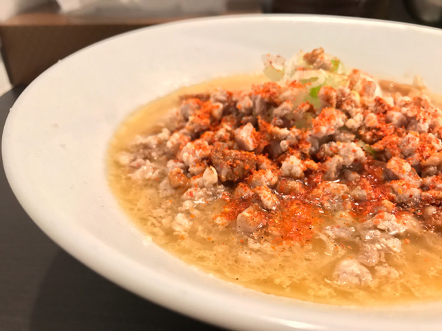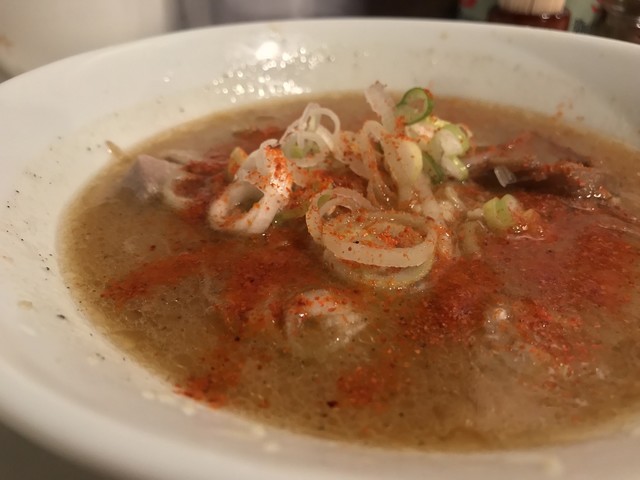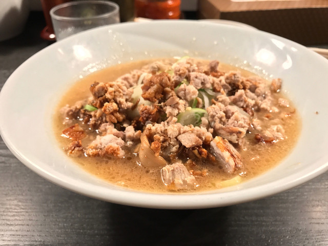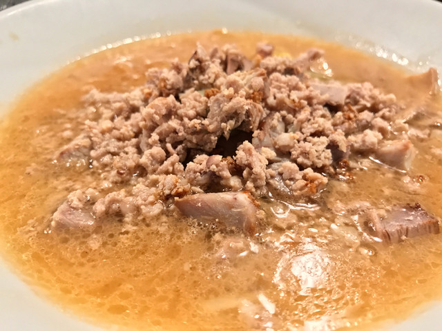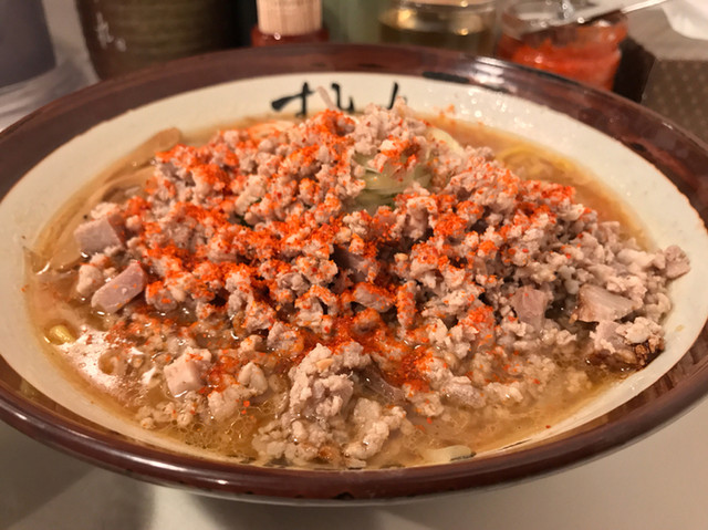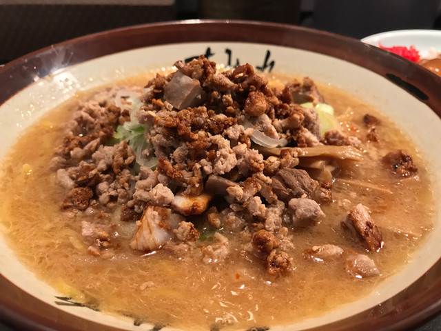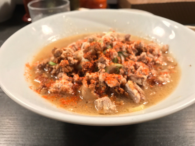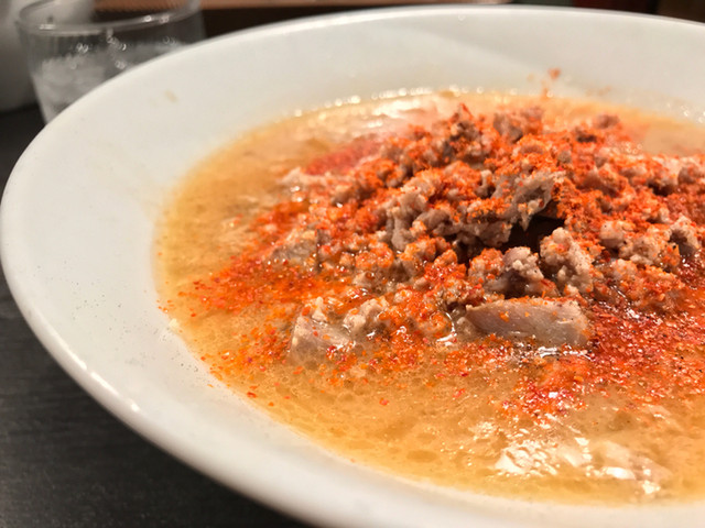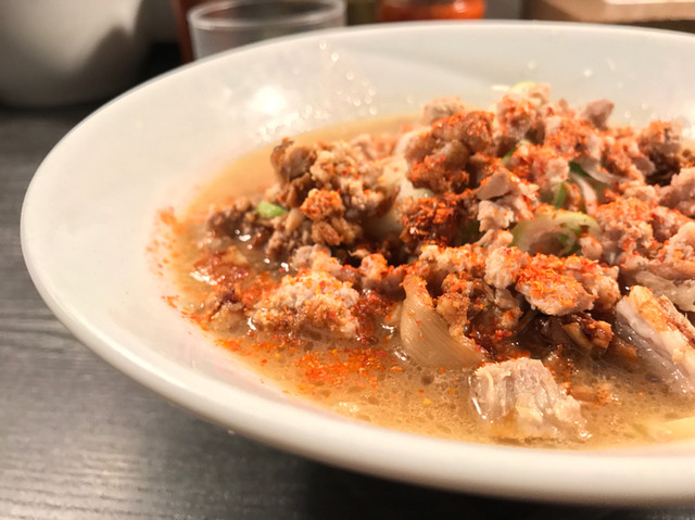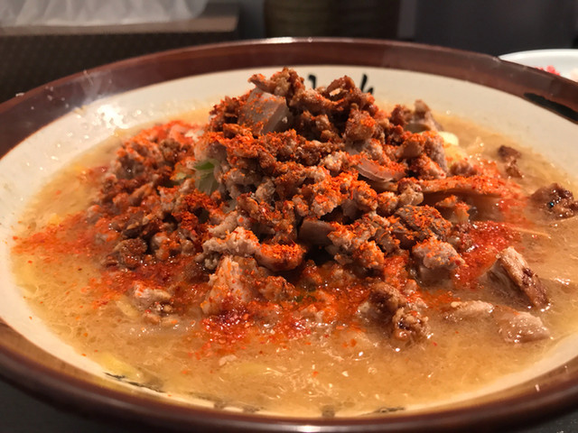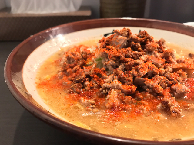 唐玉がのせられている。これが旨辛の味わいを出している。いつもの麺と異なる極太平打ち麺というのも面白い。