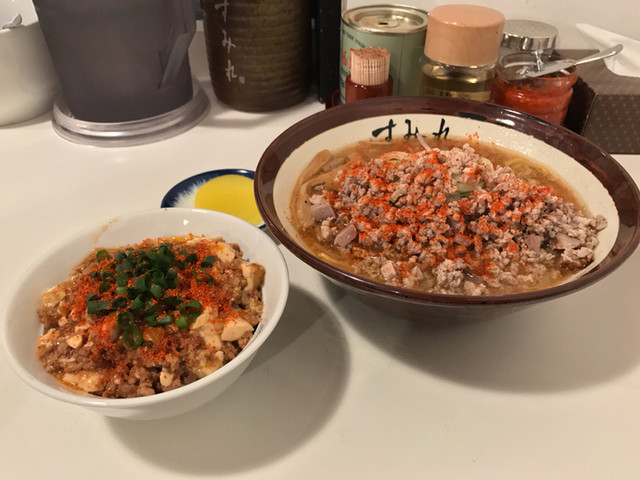 ラー博は俺の社員食堂。 平日限定、味噌ラーメソラソチ! 今日はマーボー丼を選択。あと2か月ぐらいで、アシアシの味噌ラーメソが嬉しい季節、かな