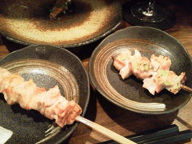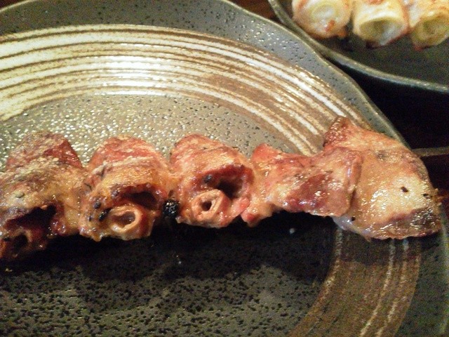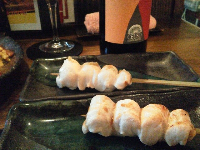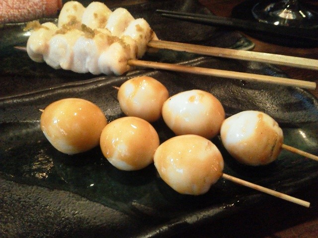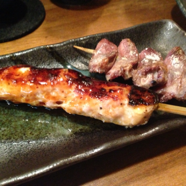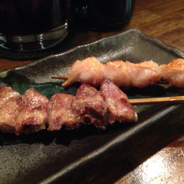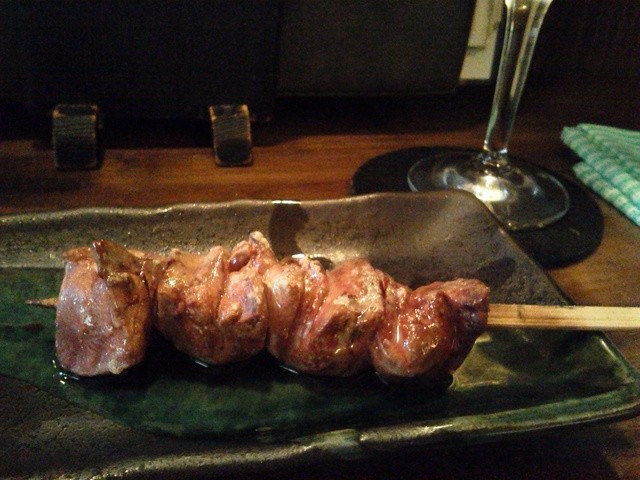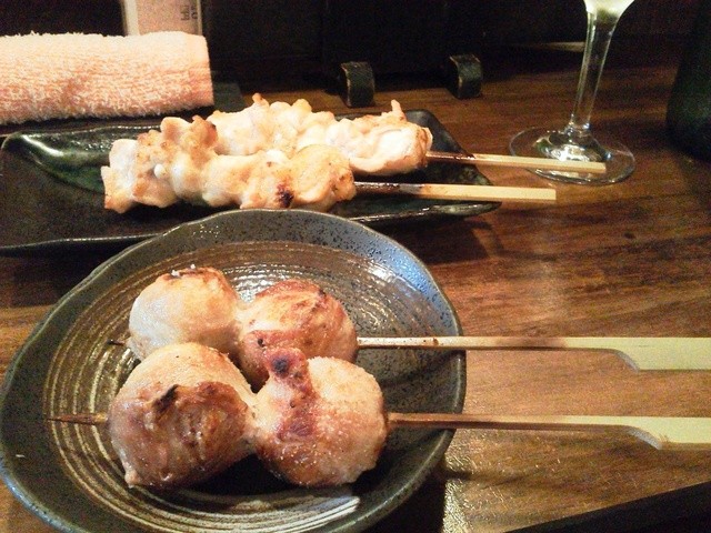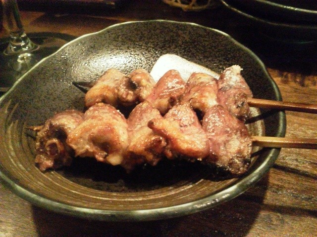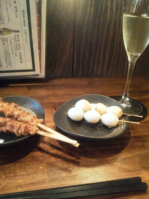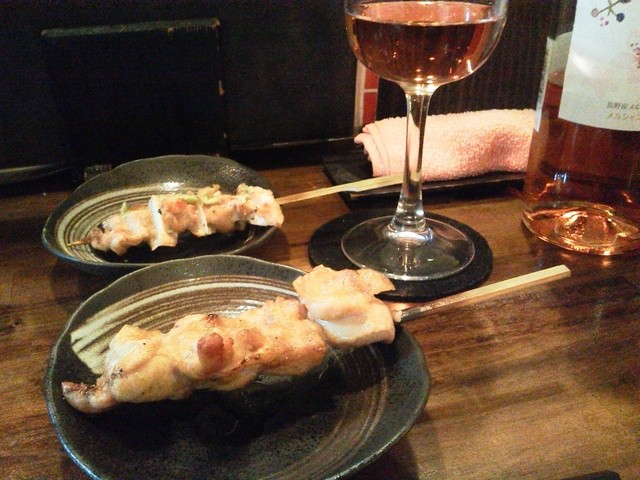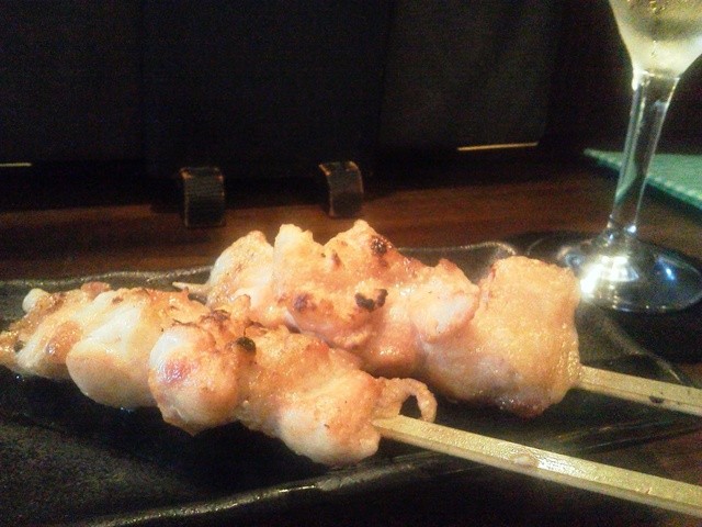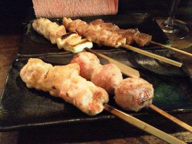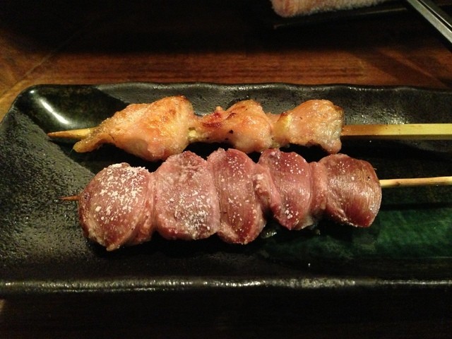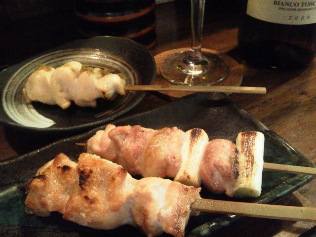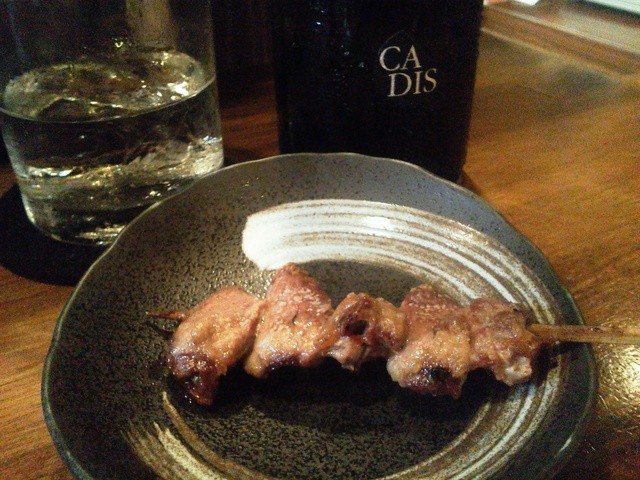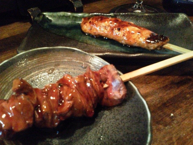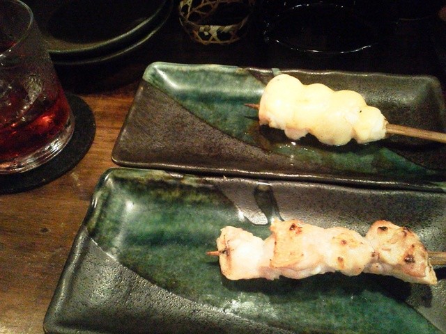 ぼんぼち、皮、せせりを2本ずつ、塩とタレで。
