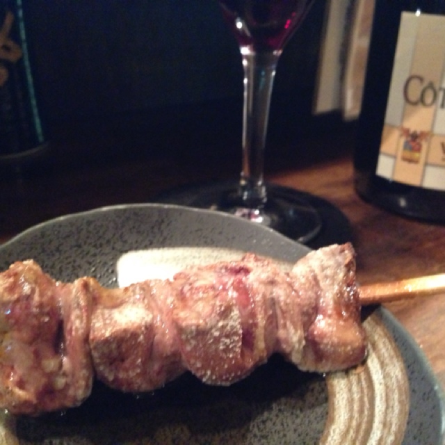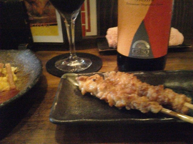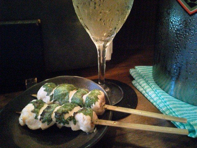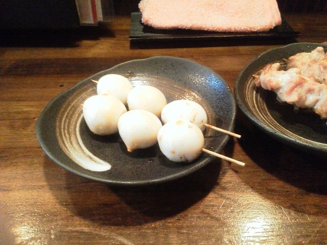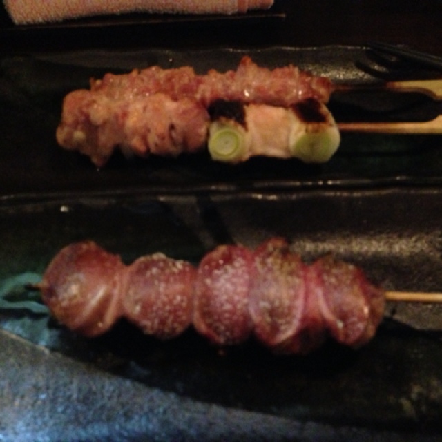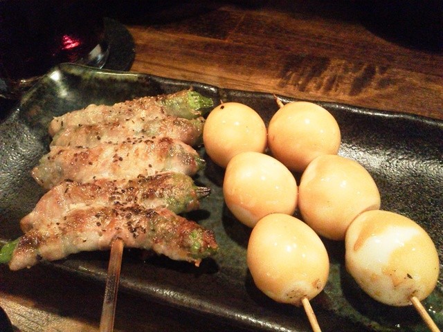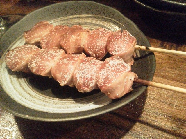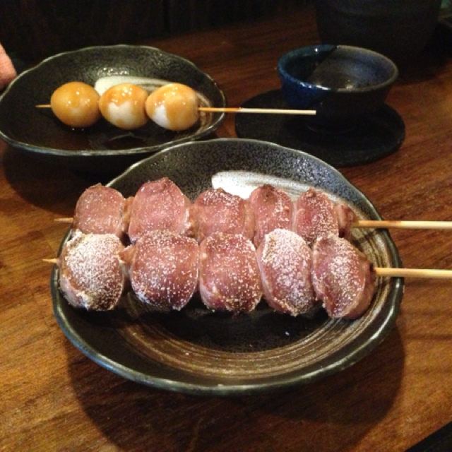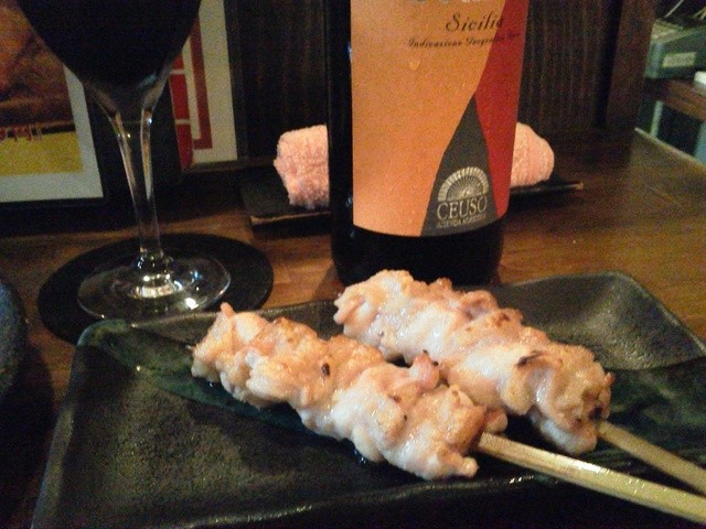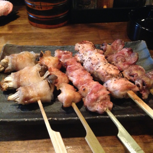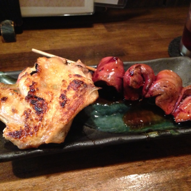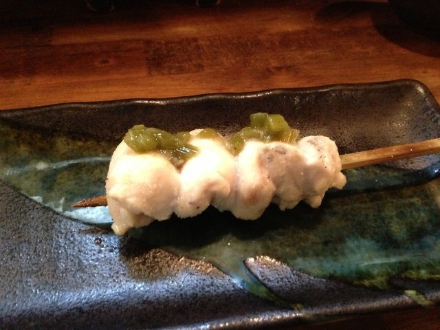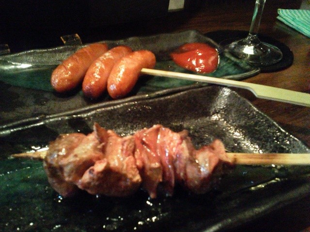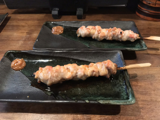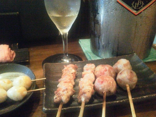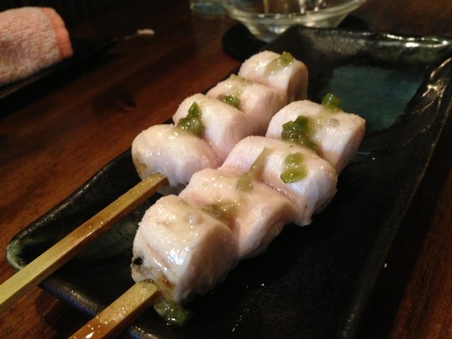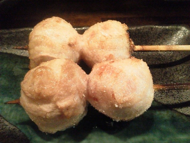 ぼんぼち、皮、せせりを2本ずつ、塩とタレで。