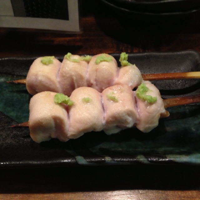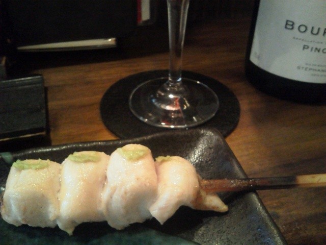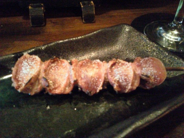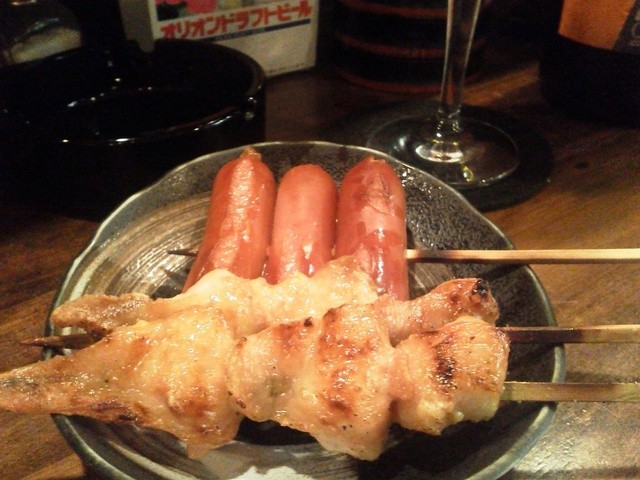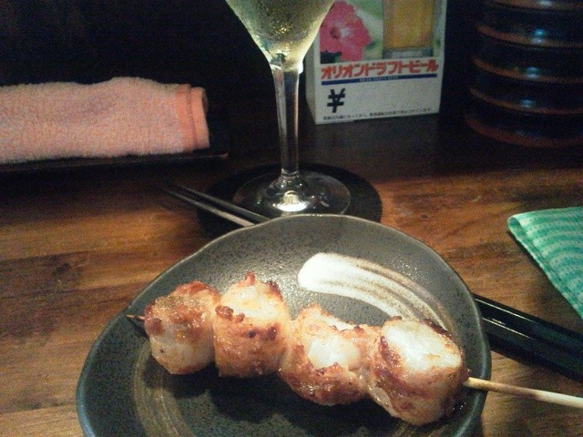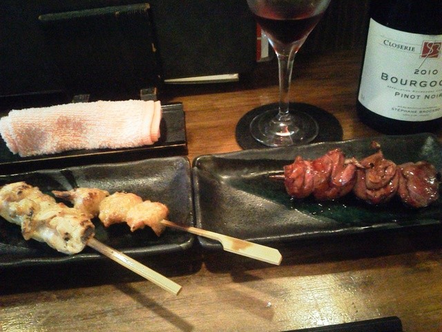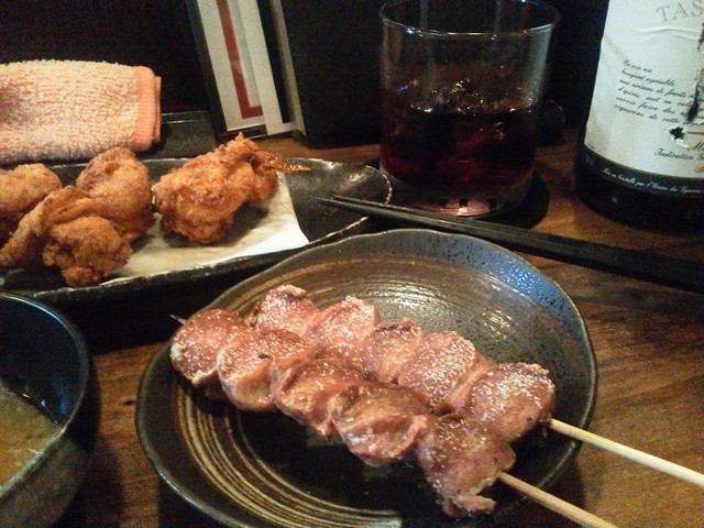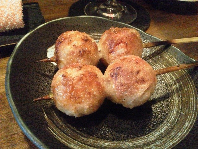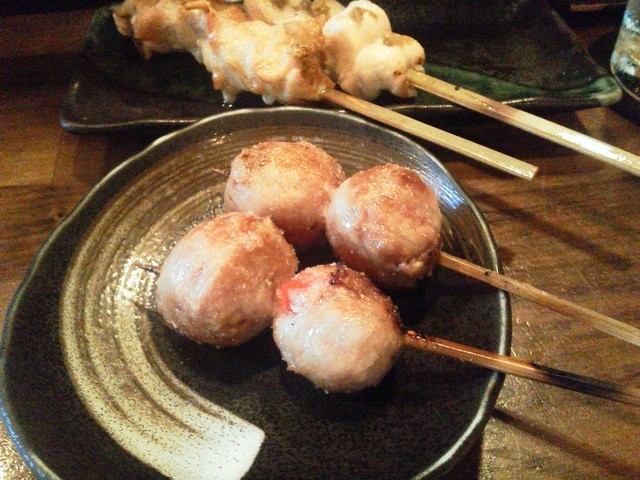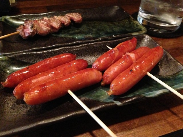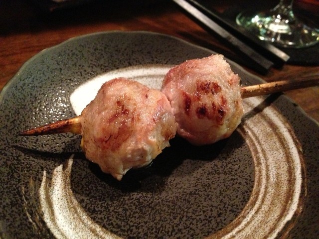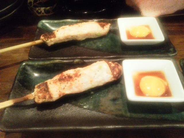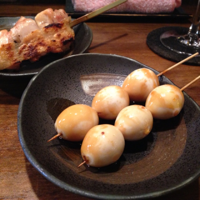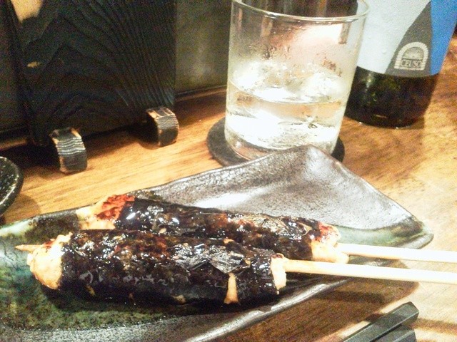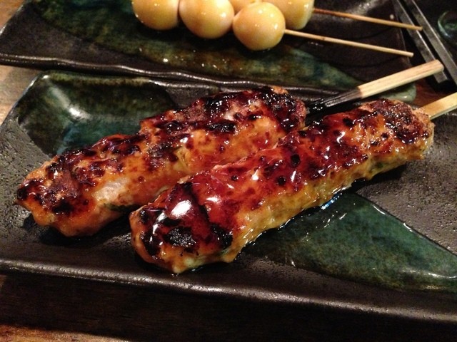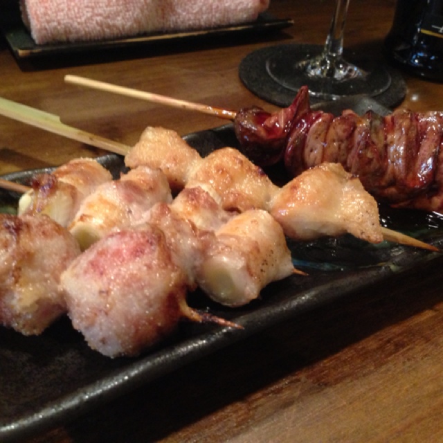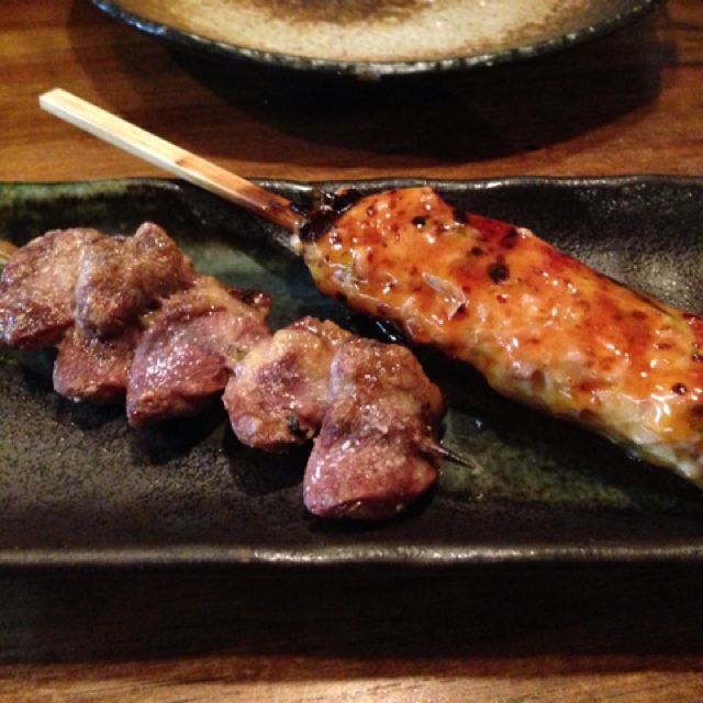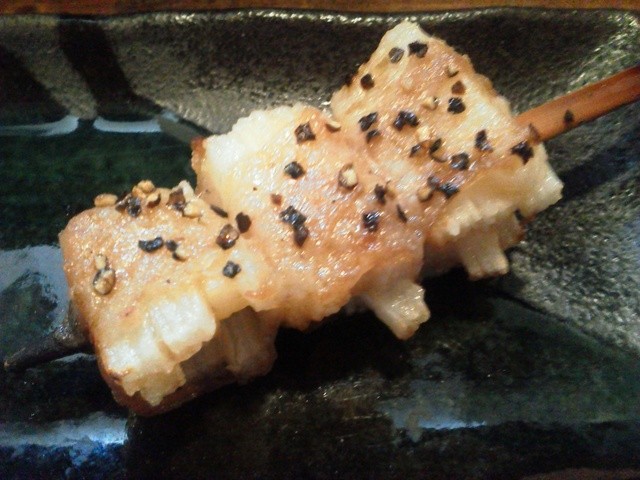 ぼんぼち、皮、せせりを2本ずつ、塩とタレで。