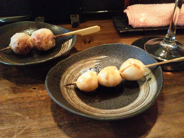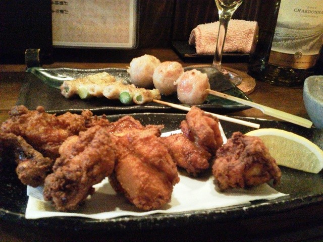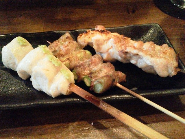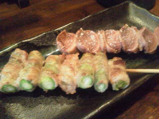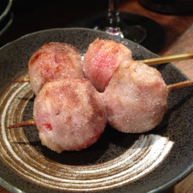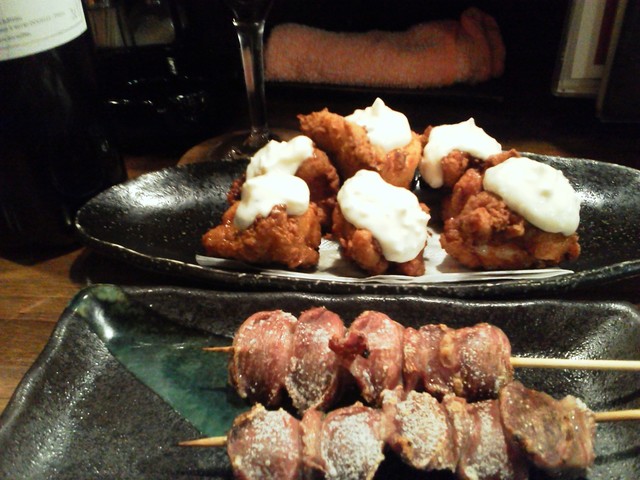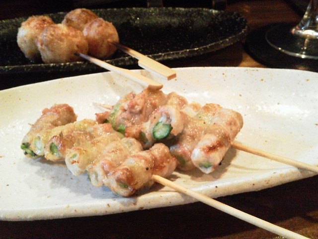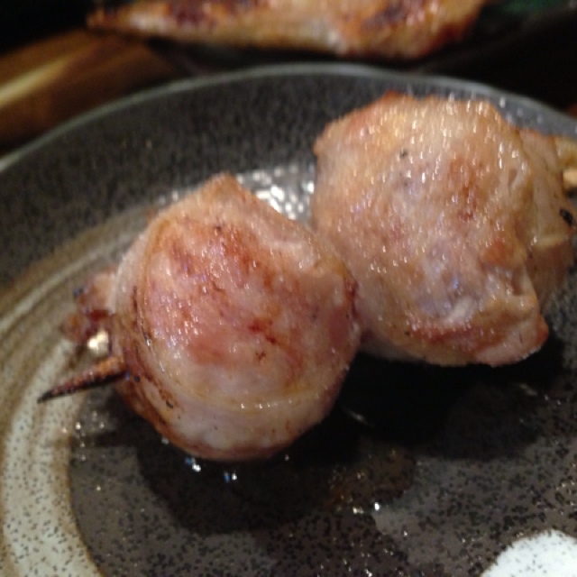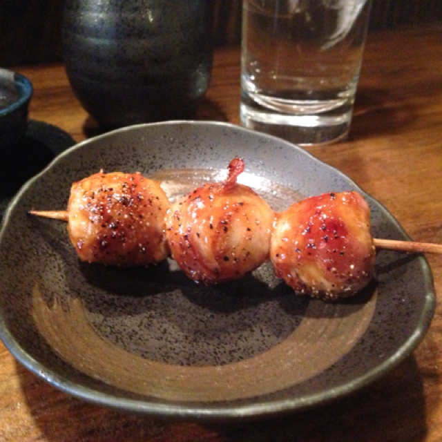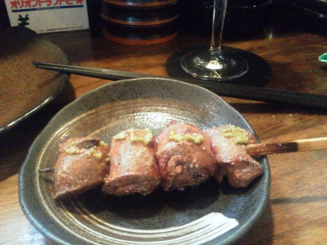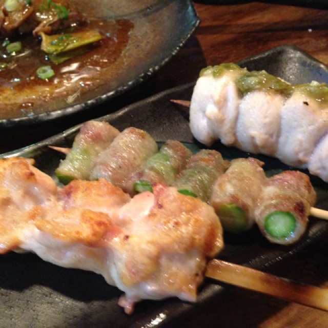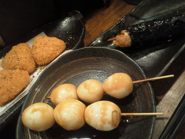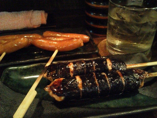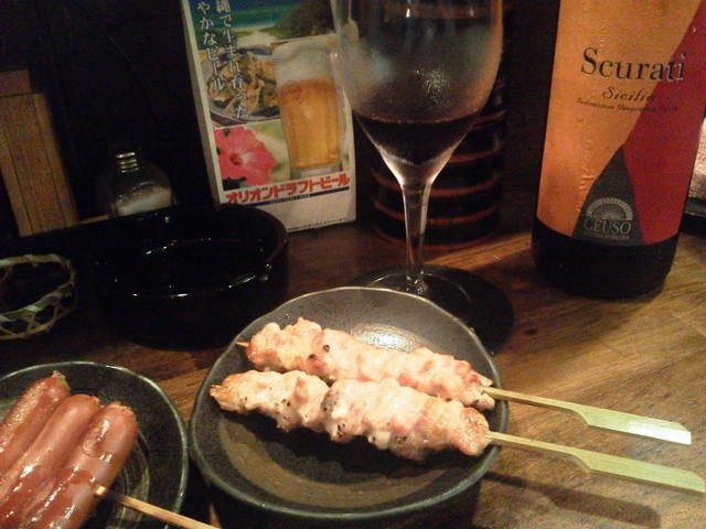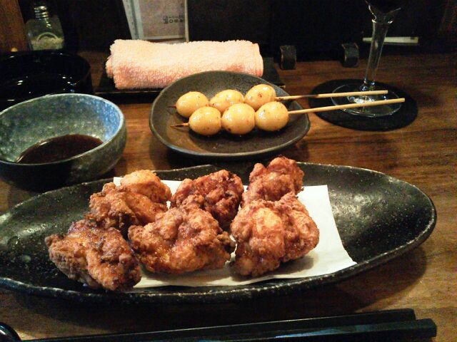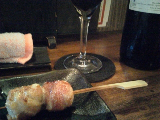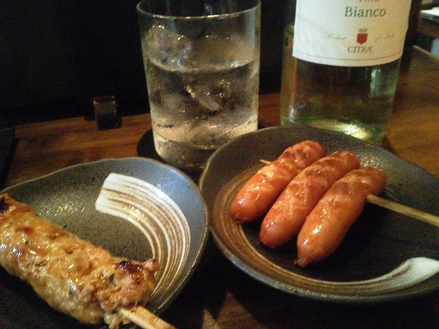 ぼんぼち、皮、せせりを2本ずつ、塩とタレで。