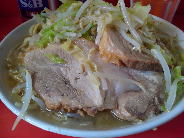 ヤサイを食べ、麺を食べ、肉を頬張り、麺を食べる。