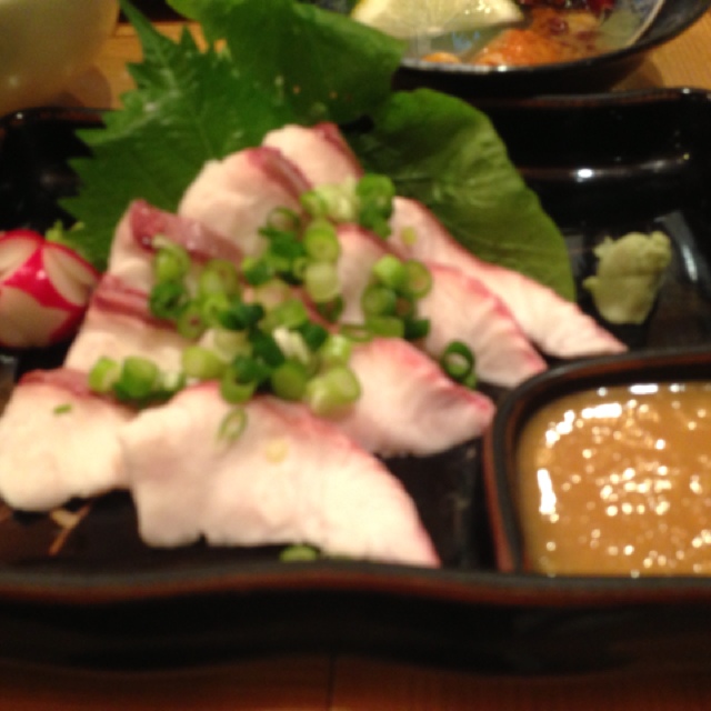 鮫の刺身は、山葵醤油か酢味噌で! アタシは山葵醤油が好み♡