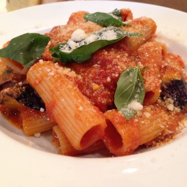 シチリア風。ナスとトマト、リガトーニで。これ、イイなぁ!