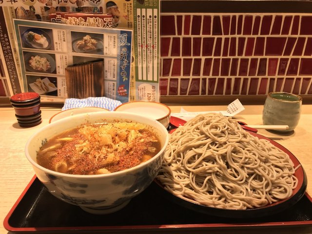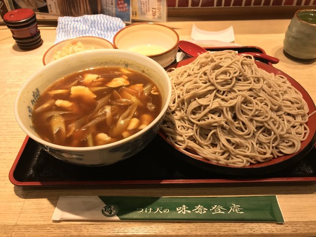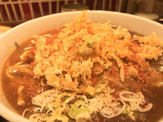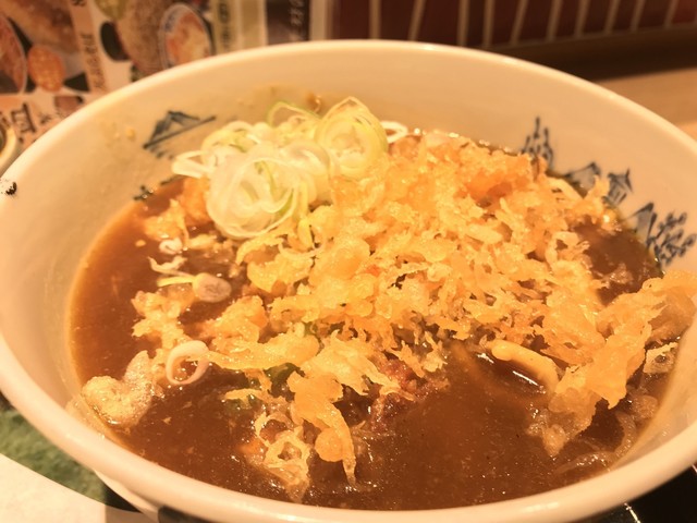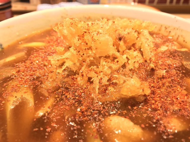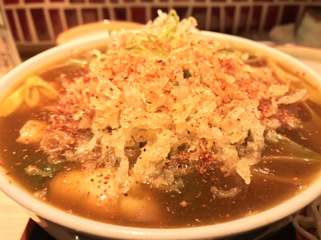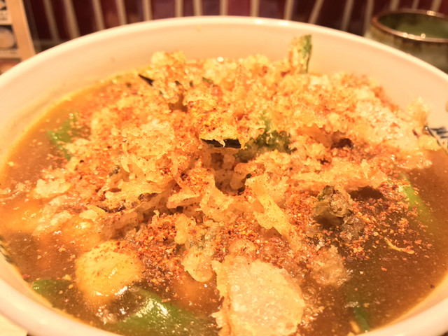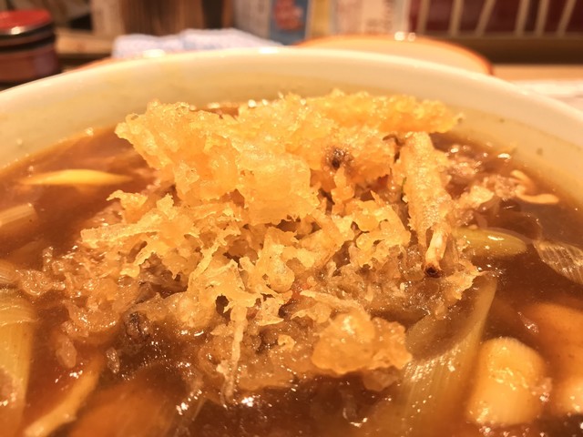 好んで「カレー南蛮そば大盛り+揚げ玉+玉子」を注文してきた。