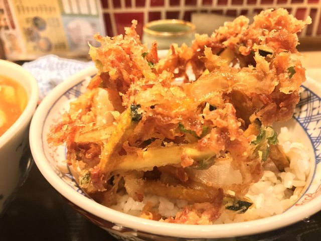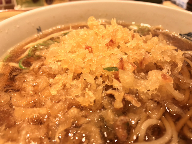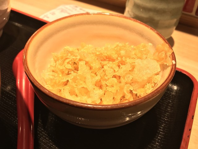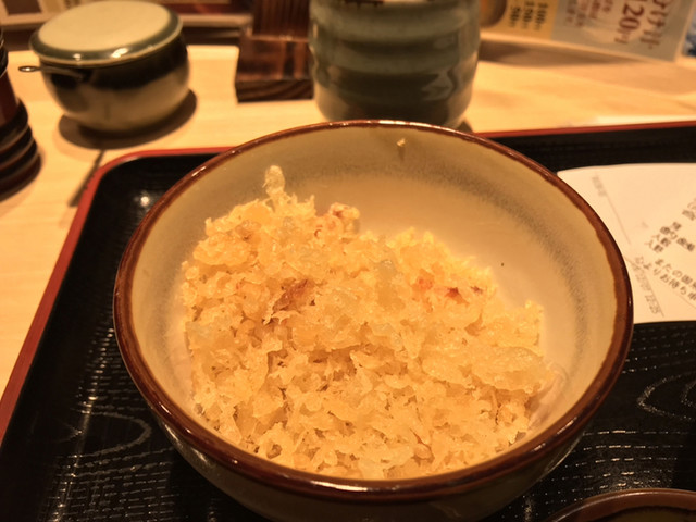 この日の揚げ玉は、誰かさんのかき揚げのおこぼれらしいかけらがプリタツ。
