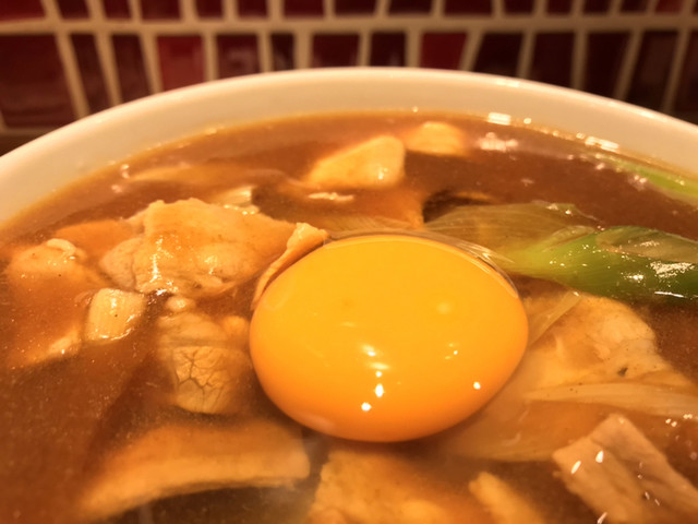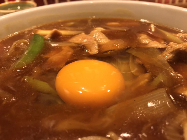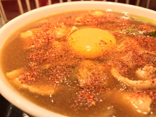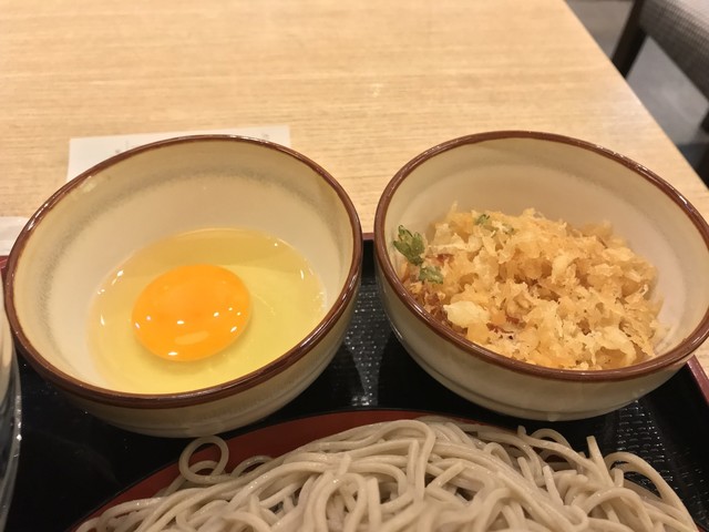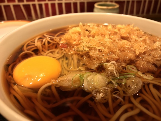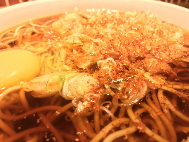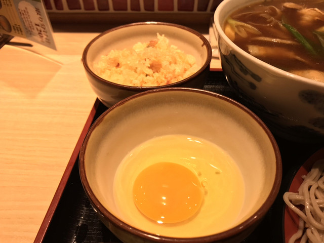 カレー南蛮そばには、揚げ玉と玉子が似合う。