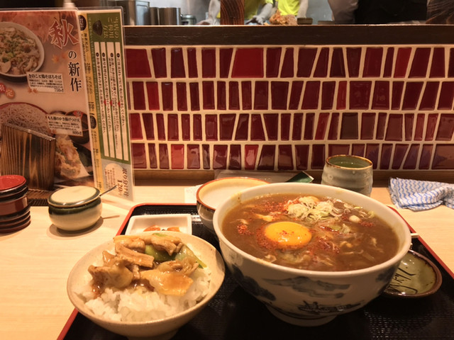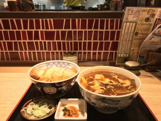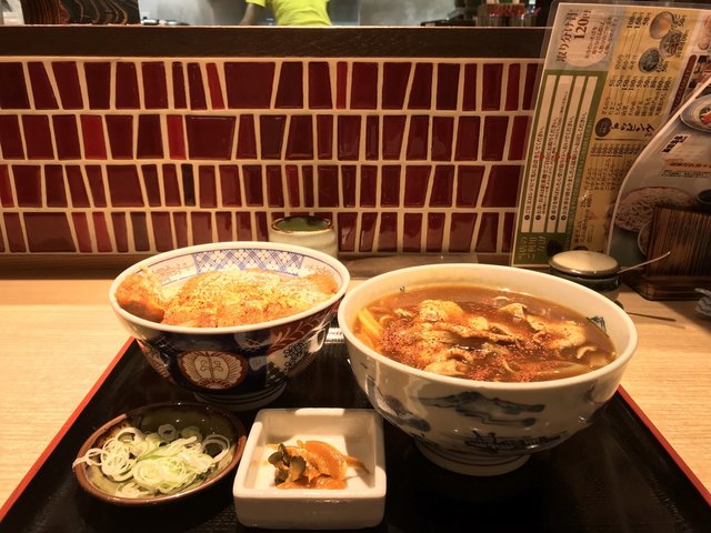 個人的には、「カレー南蛮そば+かつ丼 」の次に好ましいセットだと思っている組み合わせ。