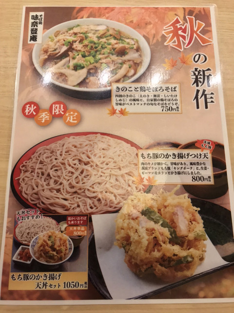 今までメニュウには掲載されていなかった「月見そば」も掲載されたが、今までの「上かけそば」に生玉子をのせただけであり、新登場と言うほどではない。