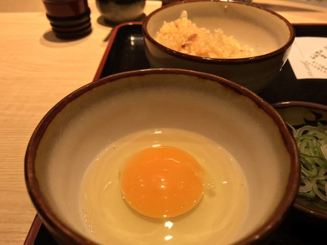 というわけで、かつ丼セットに、揚げ玉と玉子も。
