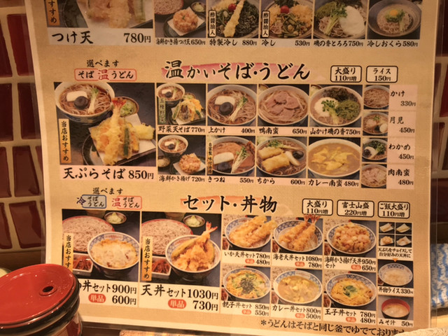そして、そば大盛りが100円追加から110円追加に、そば富士山盛りが200円追加から220円追加と、若干の値上げ。