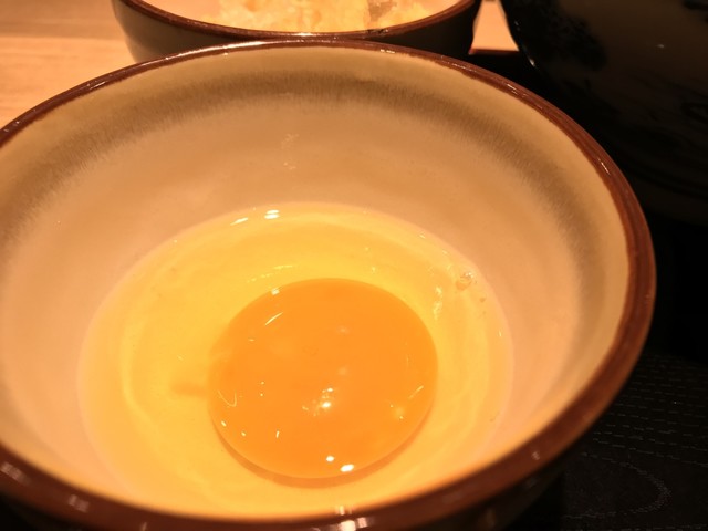 最初に玉子を投入。 食べるころには程よく温められ、黄身トロットロ♡