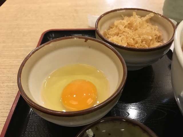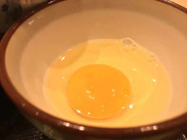 最初に玉子を丼の底へ。 ほどよく温められて、黄身トロットロ