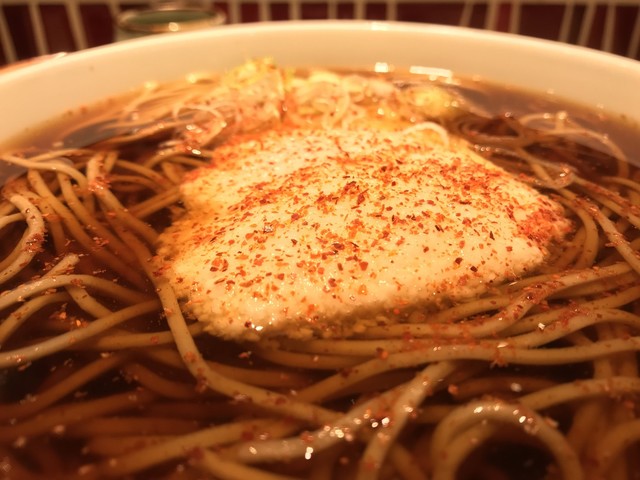そう思いながら、中華料理ではなく日本料理であることを明示するかのような海苔などを蕎麦とともにつゆにつけ、思いのままに啜ればほどよい辛さがさらなる食欲を湧き立たせ、味奈登庵らしくボリュームも充分ながら気付いた時には器は空になり、店員さンに挨拶しながら外に出、「ま、日本料理でもひき肉と胡麻とほどよい辛さの組み合わせならばタンタンと名付ける、って事だな 」と思わない、事もない。