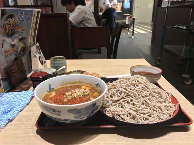 夏季限定らしい見た目の冷やしそばであるが、愛するカレー南蛮そばの魅力には敵わない。