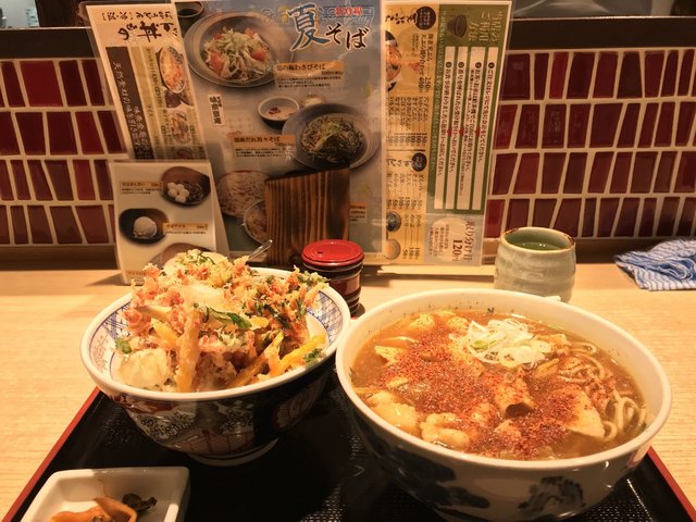 肉南蛮そば 大盛り+揚げ玉+玉子♡